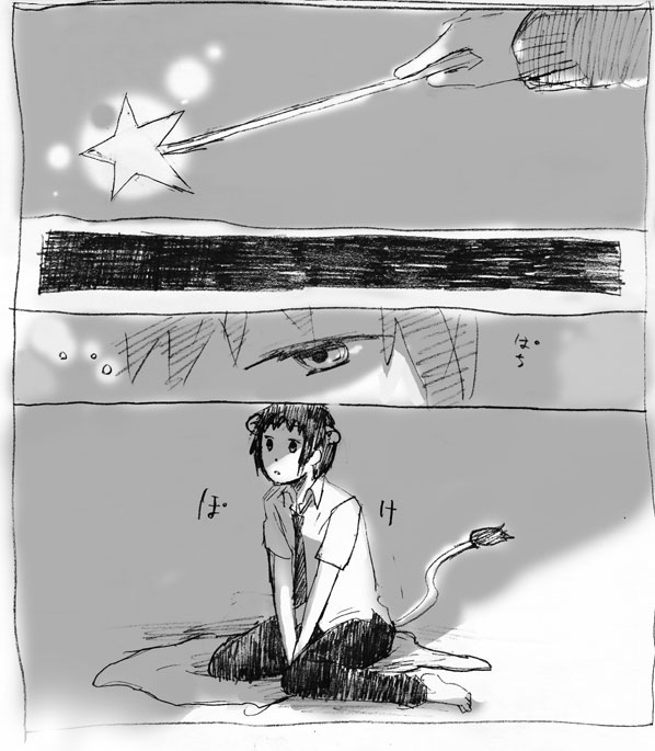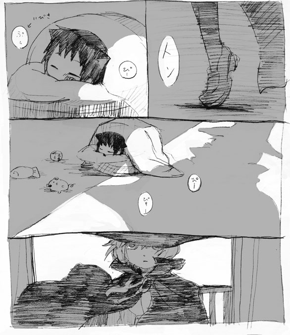 「にゃぅ。おれ、あいつのあたまのしっぽであそぶのすきだ」